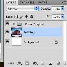 Antes de cambiar las sombras en su Robot de una sola capa, ocultar el grupo de "Viejo Robot" seleccionando el ojo que está a la izquierda de la capa.