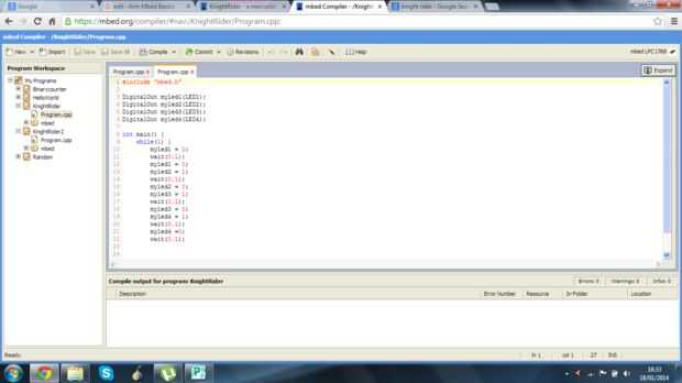 Quiero descargar mis programas bajo el nombre de 'programa' directamente a mi mbed para, al hacerlo que me pedirá que sobrescriba el antiguo programa, que me ahorra tener que borrarlo antes de subir. (Asegúrese de que no dispone de dos conjuntos de código a la vez como el mbed para puede confundirnos)