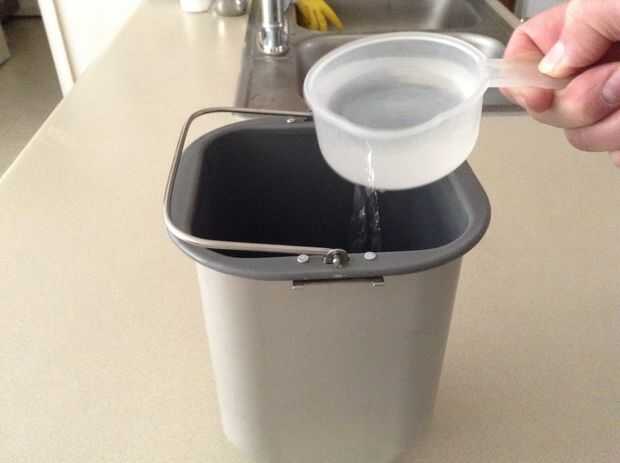 Me calienta una taza de agua en el microondas y llegar a casi ebullición. Añadir el agua primero para que en el momento de que añadir la levadura al final, no mata a la levadura pero que funcione más rápido.