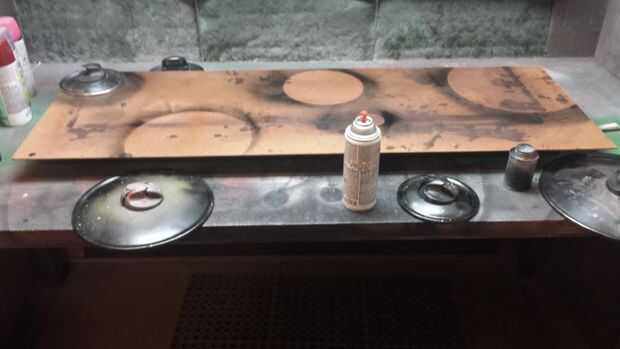 Coloque las tapas del pan en los lugares deseados de sus planetas, entonces use su pintura negra para rociar alrededor para crear un contorno.