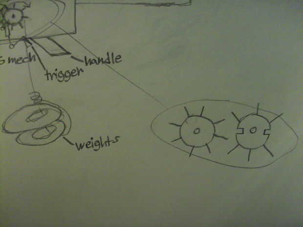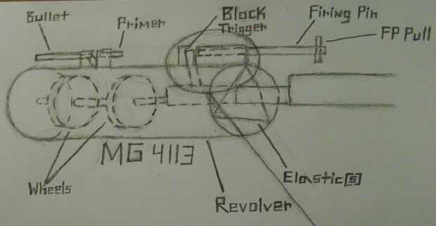 1J1: MG 4113: una revólver ametralladora que es hecho girar por elásticos. Disparadores de bloque se tiran en el interior que gira. -por Oblivitus