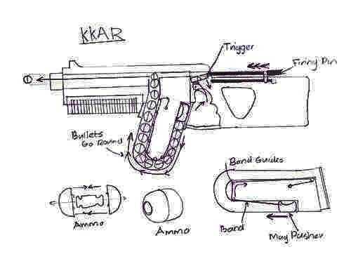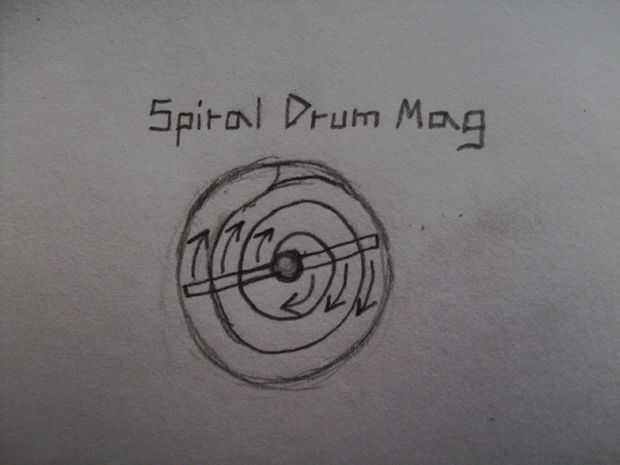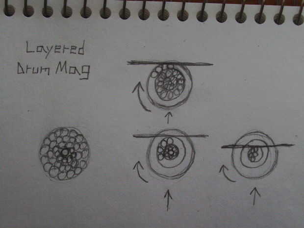 11A11: capas tambor Mag: un tambor mag con múltiples capas que llenan todo el espacio dentro del tambor que gira con un elástico y es empujado hacia arriba por un elástico. Cuando la capa externa se vacía de rondas, el tambor se mueve hacia arriba y la capa siguiente vaciado. Este cambio de capa se lograría haciendo las rondas presiona hacia arriba contra una superficie plana de la pistola. -por Oblivitus