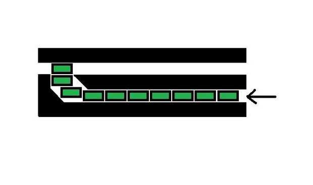 9A8: inclinado Horizontal Mag: rondas serían empujadas a lo largo por un empujador de ángulo mag. Este diseño ahorra espacio y por lo tanto aumenta la capacidad. -por Oblivitus