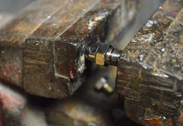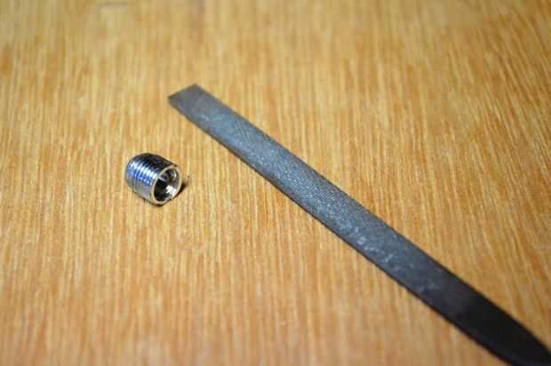 En orden para la tuerca de la bóveda para sentarse al ras en la bala, se necesita también quitar el ala de la sección del tornillo.