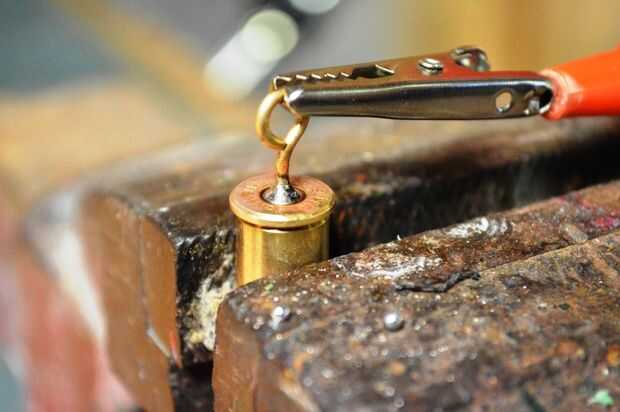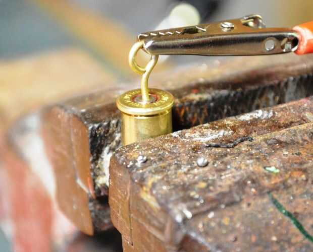 actualización: nuevas fotosTodavía tengo una pequeña bolsa de conchas de bala de cuando mi hermano me pidió hacer mancuernas para su boda. Recientemente se utiliza para hacer una flor. Aquí le damos otra oportunidad en hacer uso de cáscaras.Me martil