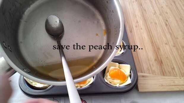 Paso 11) guardar el almíbar de los melocotones caramelizados verter después de la cocción.