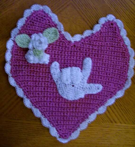 sólo diseñé este tapetito especial para vender en mi página de etsy, así que ingrese en este concurso... Apenas ingresé a la Esty para grupo de autismo y una de las cosas que te preguntan que hacer es dedicar uno de sus artículos a donar a la concienciación del autismo. Decidí, después de buscar en otros sitios de miembros y cosas, para tratar de inventar algo especial para vender, y esto es lo que se me ocurrió. Mi hijo tiene 12 años y tiene síndrome de down y autismo y es no verbal... así que usamos el I LOVE YOU signo mano mucho por aquí. Cuando tienes un niño que no puede hablar, una señal de mano puede significar mucho. Espero que disfruten mirando mi nuevo trabajo y gracias por permitirme mostrar aquí. Creo que es un San Valentín perfecto presente para cualquier persona. http://www.capecodconsignments.etsy.com
