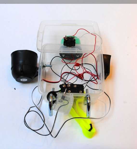 I cable de la luz estroboscópica a la batería y entonces atado con alambre ambos sirenas a la batería a través del interruptor. Usé un pedazo largo de alambre para ir de las sirenas para el interruptor más pequeño así que puedo montar el interruptor allí donde lo necesito.