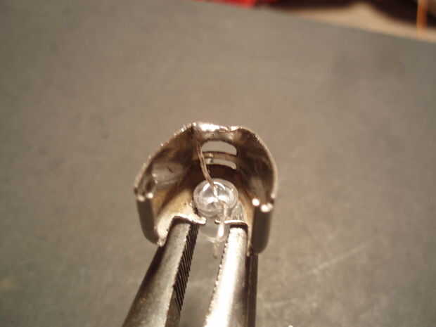Quieres uno de los conductores en el LED para el escudo de metal de la soldadura, no tiene que ser donde lo hice, pero me pareció que lo hizo más fácil para cuando quise conectar el cable al otro cable (usted verá por qué más adelante)
