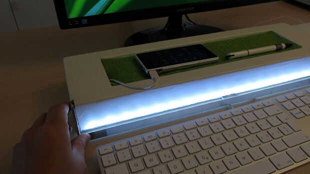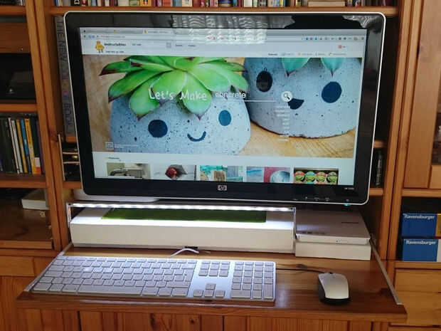 Necesitamos una lámpara de escritorio y un soporte de reproductor de DVD; Tuve algunos LED restantes y quería hacer algo con estilo con hormigón...