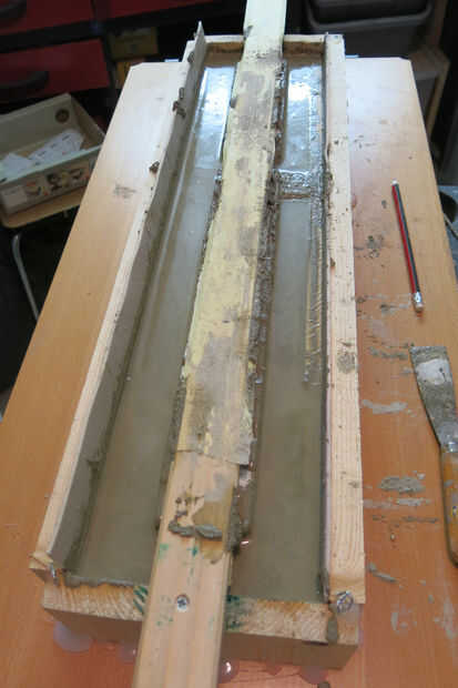 Añadir más concreto para alcanzar el espesor total deseado. Esparcir uniformemente con una espátula.