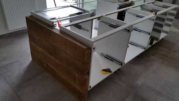 Después de la reconstrucción de los gabinetes de cocina de base, podríamos atornillar los gabinetes y atornillar el oakplanks