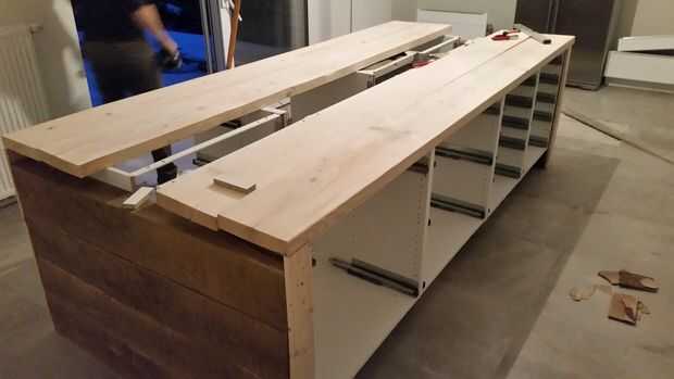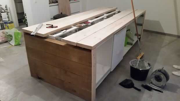Mesuring fue hecho y como el robledal que cortado algunas ranuras para las barras de ajuste y con el router y el rompecabezas que cortado el orificio para el fregadero, vitrocerámica y extractor de campana