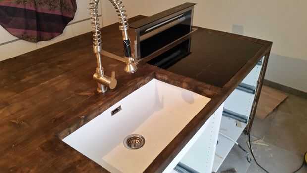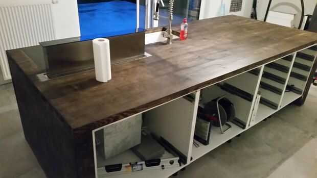 Cuando vendimos nuestra casa en Wisconsin y se mudó a California tuvimos que dejar atrás la vanidad que había construido para mi esposa en el baño principal. La vanidad era altura de la mesa así que ella podría sentarse y utilizar como una tabla de