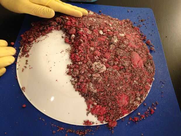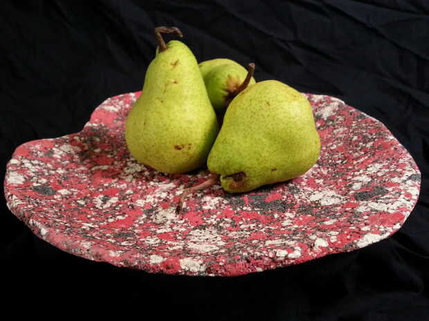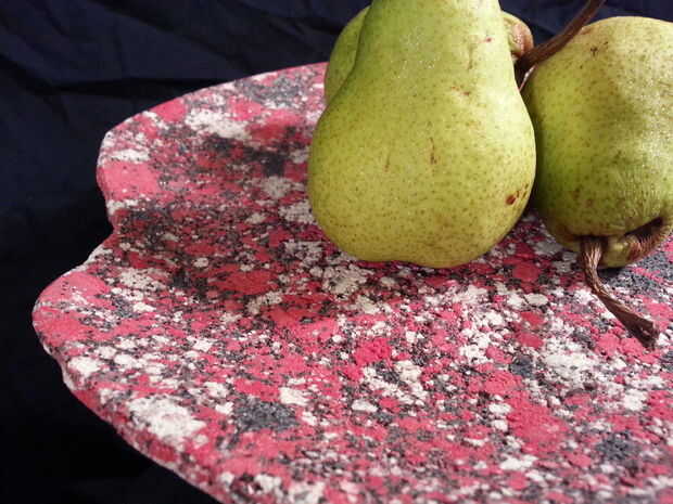 Mokume gane es una técnica metalúrgica que he tratado de emular el uso de concreto. Consiste en apilables distintos materiales coloreados para crear capas finas. El material se corta para dejar al descubierto las capas inferiores y luego aplanado par