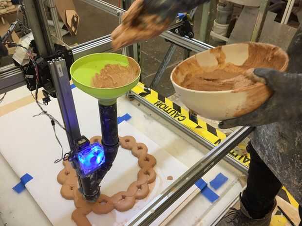 El estudio inicialmente comenzó a partir material investigación y exploraciones de diseño simple final efectora, que fue refinado a través de un proceso iterativo a una máquina más fiable y predecible material, que eventualmente se utiliza para sacar desde el efector final en la impresora 3D. Mientras que la impresora 3D sí mismo fue basada en un kit CNC precompilado que fue modificado para dar cabida a una profundidad Z más profunda y más grande X, Y las dimensiones. La clase era necesaria para entender el código de G para funcionar la máquina. Por suerte teníamos la dirección de nuestros profesores brillantes, Jason y Michael, para ayudarnos durante este estudio. Pero fue durante las sesiones de impresión donde entender cómo solucionar problemas in situ durante el proceso de impresión fue cuando nos enteramos de la mayoría. Sin embargo, esta descripción simple realmente no explica toda la historia del estudio. El objetivo de este instructables es guiarte en aprender más acerca de los procesos que utilizamos, nuestros estudios material y diseño del efector final; así como dejar que se beneficia de nuestros fracasos y éxitos. Si usted toma interés en este proyecto, esperamos que esta guía le proporcionará una mejor comprensión.
