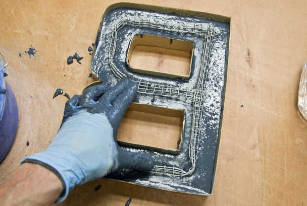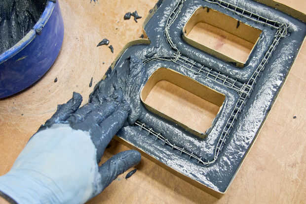 ShapeCrete de la mezcla a una consistencia moldeabley Añadir pigmento si desea que un color. Empezar a llenar y agite la forma alrededor de nivelar la mezcla. Cuando se trata de lleno hasta la mitad, detener y colocar el refuerzo interior.