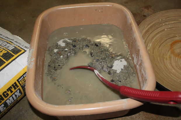 Esta foto no se ve exacta! No se ha mezclado, por lo tanto, parece más agua que usted va a necesitar. Para ver cómo el concreto cuando se mezcla correctamente, consulte el paso 4. Puede Agregar al agua un poco en un momento así no poner en exceso.