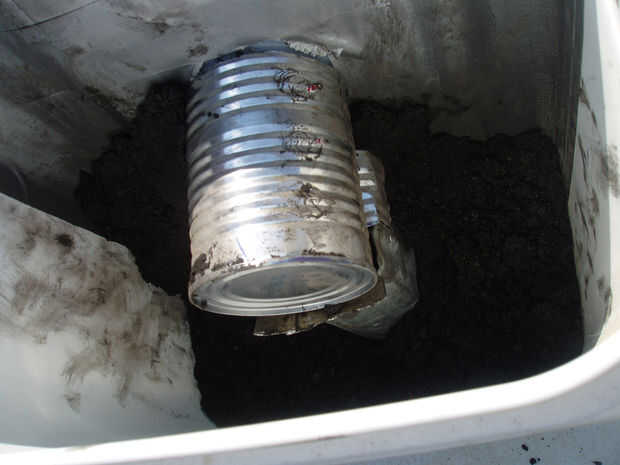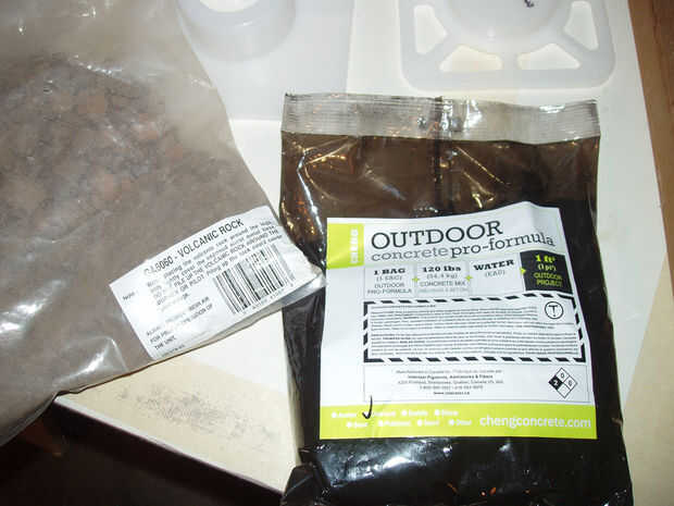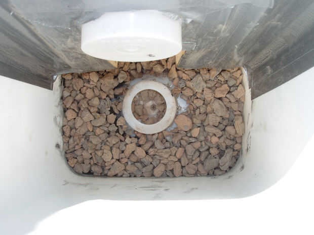 • Vierta el volcán rocas en la capa inferior de la cubeta.