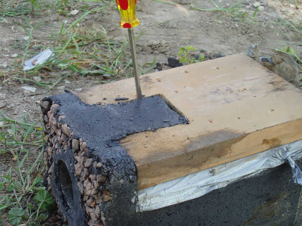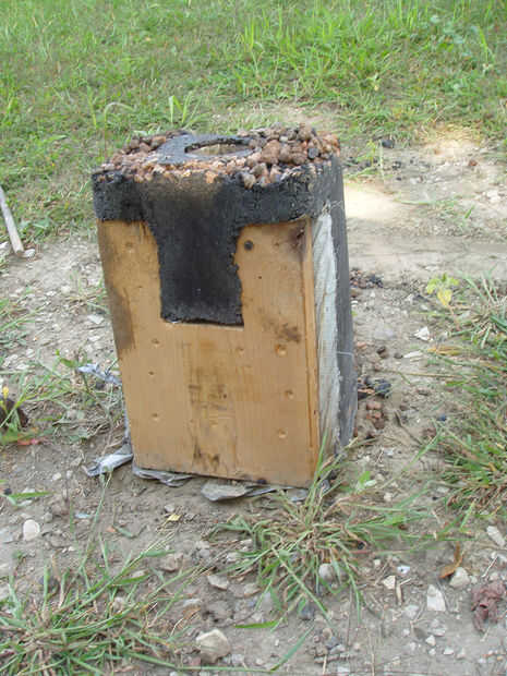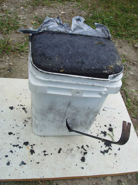 • Trabajar el concreto fuera la cuchara poco a poco. Voltee el cubo y levantar el cubo de hormigón. I utiliza una palanca para liberar de la cubeta y terminó por dividir la parte de atrás para eliminar. La nariz resultó para ser un desafío para separar. Utilice un destornillador en el borde para quitar.