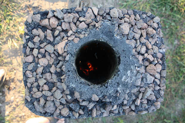 Concreto Tiki Rocket estufa (7 / 7 paso)