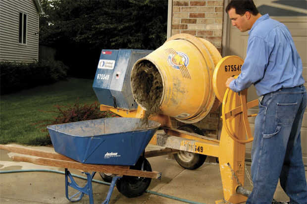 Después de que usted está satisfecho con la consistencia, la mezcla de la carga en una carretilla y lo entregan a la forma.