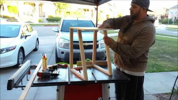He aplicado algún pegamento para madera a la parte superior de cada pata y había alineado la tapa de tabla, como se mencionó anteriormente.