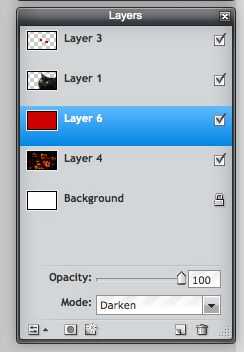 Añadir un tinte rojo haga clic en la herramienta forma y elegir una plaza. Su cuadrado debe ser rojo. Al hacer un cuadrado de ampliar sobre el lienzo entero. Asegúrese de que la Plaza esté detrás de todas las capas excepto el fondo (Jack O'Lanterns display). El último paso es cambiar el modo de capa a oscurecerse.