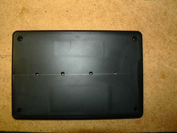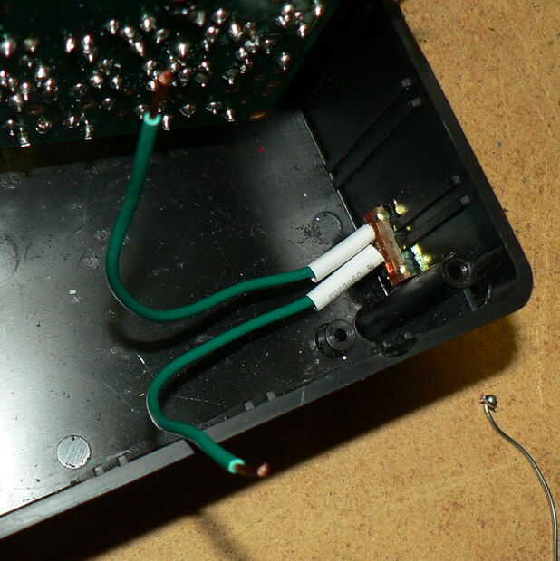 Luego tenemos que agregar el conmutador. Esto enciende la unidad y evita que accidentalmente se activa durante el almacenamiento. Usé mi Dremel para tallar un agujero justo lo suficientemente grande como para que el interruptor. Sin embargo, no era muy bonito así que añadí esa almohadilla goma fina que puedes ver en la imagen. El interruptor estaba caliente pegado en el interior de la caja (foto 4). Tomar unas tres pulgadas de cable sencillo extender el conector del interruptor deslizante en el interior de la caja. Esto hará más fácil conectar a la placa posterior (Foto 5).