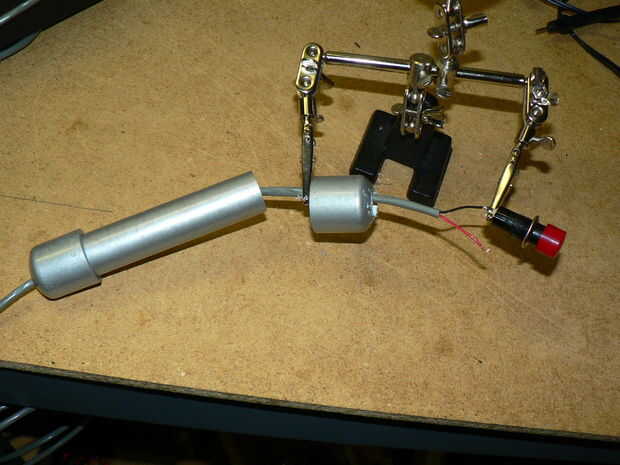 Cortar un trozo de tubo de PVC unos 4-5 pulgadas, tiempo suficiente para que su mano caber cómodamente. Tomar una tapa de PVC (cap "A") y perfore un agujero en el centro, el mismo tamaño que su cable. Tomar la segunda PVC tapa ("B") y perfore un agujero de un tamaño apropiado para su interruptor momentáneo.