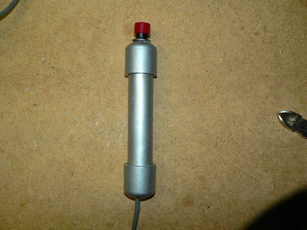 Ejecute el cable a través de la tapa A, el tubo y el tapón B, en ese orden (Foto 1). Ahora Conecte su interruptor (ver interruptor instrucciones de pos/neg). Empujar todas las piezas juntas (Foto 2). Mina era un ajuste bastante apretado que no necesito para pegar las piezas de PVC entre sí, pero puso pegamento caliente dentro de la tapa B para que el interruptor se mueva.