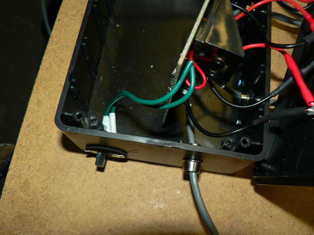 Por último, une los cables del interruptor deslizante a la esquina superior izquierda del tablero (foto 4). Consulte las instrucciones del kit para más detalles sobre los agujeros para usar. Esto se hace pasado para facilitar la soldadura de los cables del botón.