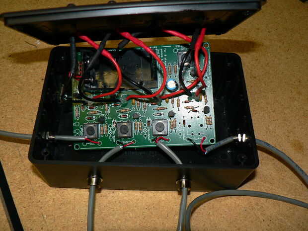 Correr los cables del botón fácil a través de los orificios de la caja y conectarlos a la Junta como se muestra en la foto (Foto 3). Se trata de un dolor por todo lo que es conectado.