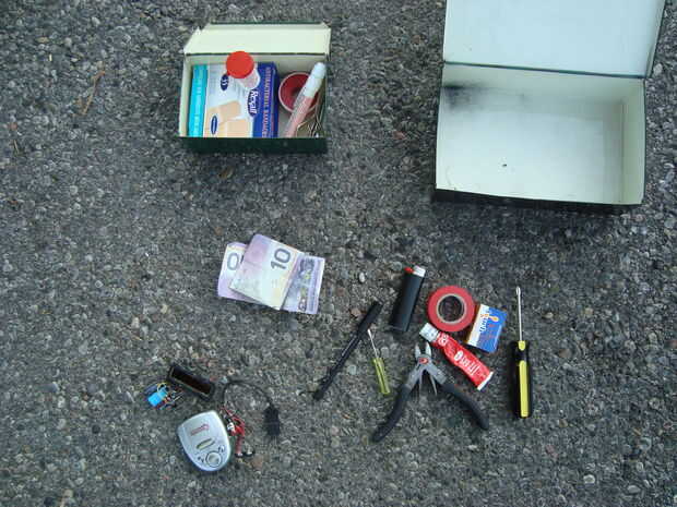 este es un kit de herramienta de supervivencia que, para un a corto plazo, podría ayudar en algunas situaciones. Como muchas personas hoy en día tienen los teléfonos inteligentes, muchos iphones, muchos artículos de supervivencia podrían caber en un