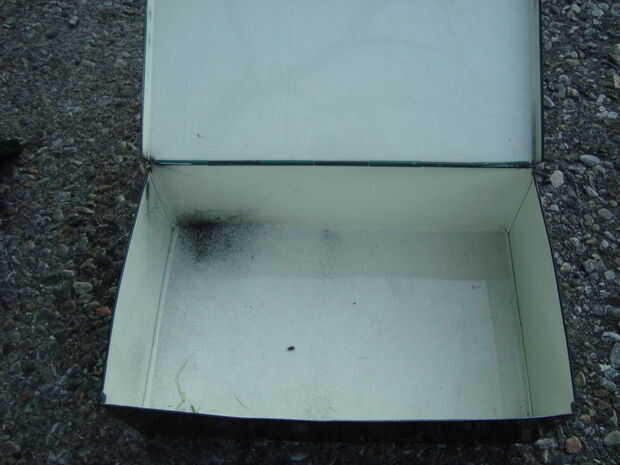 la caja que usas debe ser durable, de metal y ser capaz de tomar una paliza con a última hora. Usé una caja de metal que encontré mientras limpiando el ático. Después una pintura rápida y cierta lubricación, era tan bueno como nuevo!