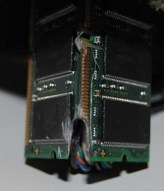 La bruja detrás está una esquina que corte una ranura lo suficientemente grande para dejar los cables pasar libremente.