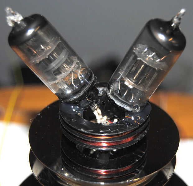 En la misma caja de basura encontré algunas bobinas y eligió uno de todo la mayoría del mismo diámetro como el agujero en el centro de los platos del disco duro. A esta bobina pegué los dos tubos en una configuración de V.