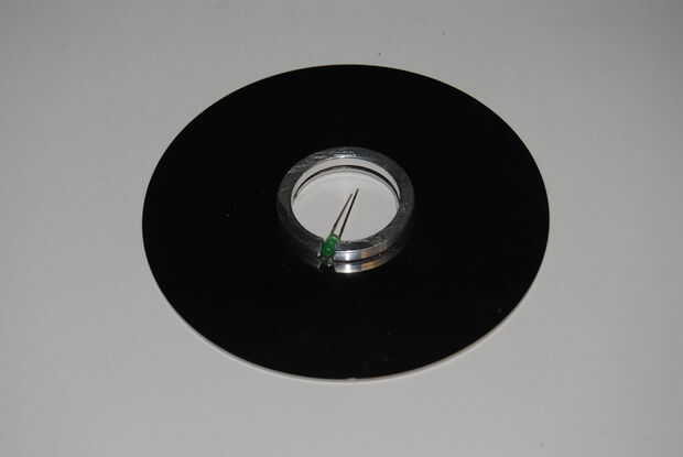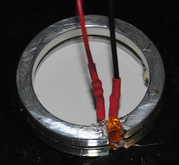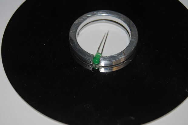 Utilizando un par de riostras de un disco duro que corte ranuras en ellos. Estos espaciadores entonces fueron pegados a los platos. Antes de pegarlas arañado la superficie buenísimos para obtener una buena adherencia. Ahora pegué diverso color del LED en las ranuras que corte. Decidí agregar el resistor limitador actual aquí y los cables.