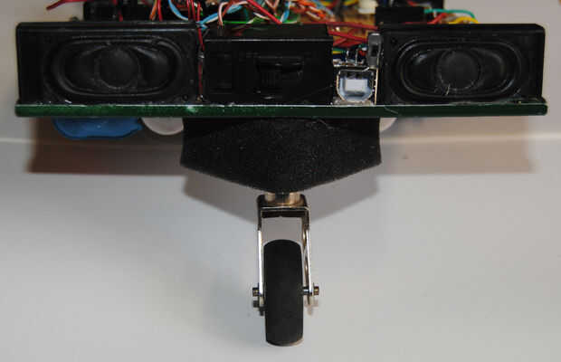 Robots de dos ruedas la mayoría utilizan una rueda giratoria para la rueda trasera pero no tengo ninguna que pude encontrar aunque todo más baja una pieza de equipaje de una de las ruedas. Cómo siempre halló un conjunto de rueda de cola de RC, pero no pudo encontrar una manera para que Monte y ser robustos. Entonces vi un ventilador de la impresora y su orificio era del tamaño exacto del eje de rueda de cola y un buje perfecto. Así que aunque no era plan de Pee-Wee tiene un ventilador de refrigeración. El ventilador tiene una potencia de 24 voltios pero no lo suficientemente bien en 6 voltios.