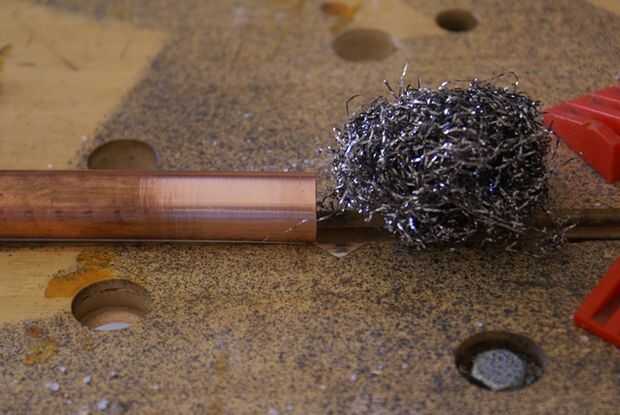 Hacer que la parte que desee de la soldadura está limpia! Asegúrese que la parte que desea soldar esté limpia! Eso no es una errata, es una instrucción muy importante. Utilicé lana de acero para limpiar los extremos del tubo y dobla un pedazo de lana de acero alrededor de una broca de taladro para limpiar los accesorios en el interior.