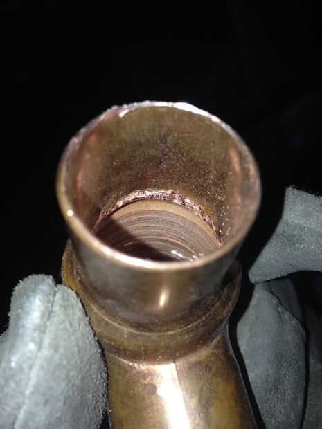 Como se ve en la primera foto está un poco canto/parada dentro de la t para parar el tubo de 3/4" de ir demasiado lejos en el interior.