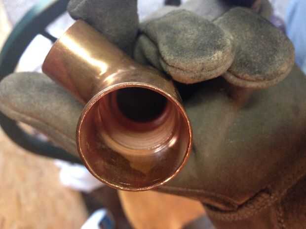 Necesitamos molino, moler, liso esta abajo para que nuestro tubo de 3/4 puede pasar cómodamente a través de la t y hacia el lado de 1".