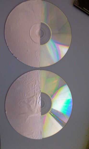b.) lugar CD pegamento abajo en papel tan sólo la parte cubierta de pegamento del CD es sobre el papel de estaño