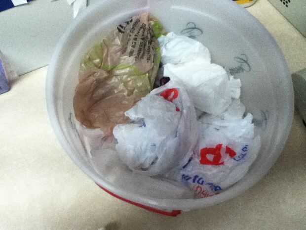 en un esfuerzo por ser "Verde", empecé a guardar mis bolsas de plástico por lo que pude devolver en grandes grupos para ser reciclados. Se habían reunido unos cuantos bolsos, pero guardado olvidar llevarlos a reciclar. Así que empecé a usarlos p