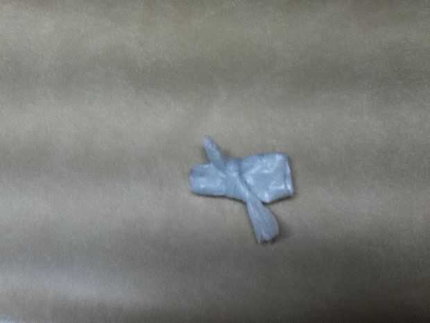 Separar las asas dibujo uno encima y otro debajo de la parte inferior. y ate un nudo simple en la parte superior de la parcela.
