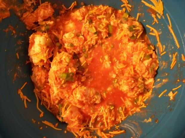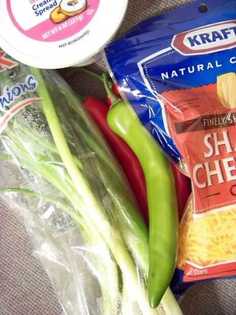 Para la consistencia en la imagen, es 2 paquetes de queso crema, 1 botella de salsa y 1 paquete de queso cheddar. Agregue cebollas y chiles al gusto.)