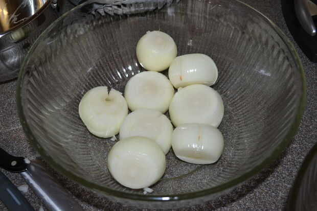 Combiné mis cebollas en un recipiente no reactivo, junto con