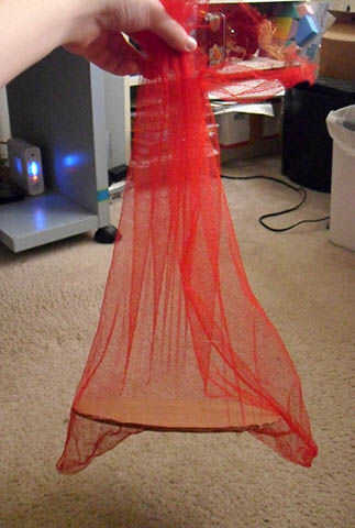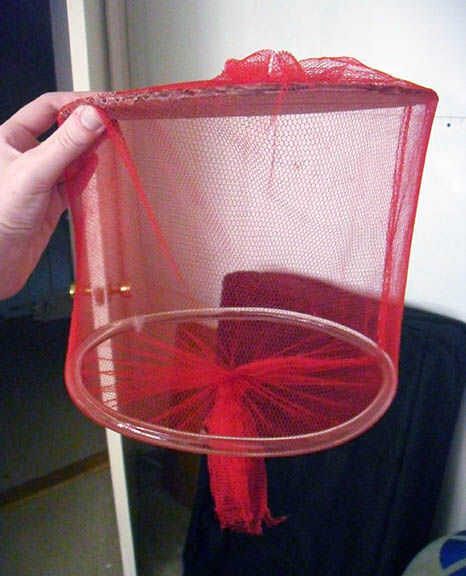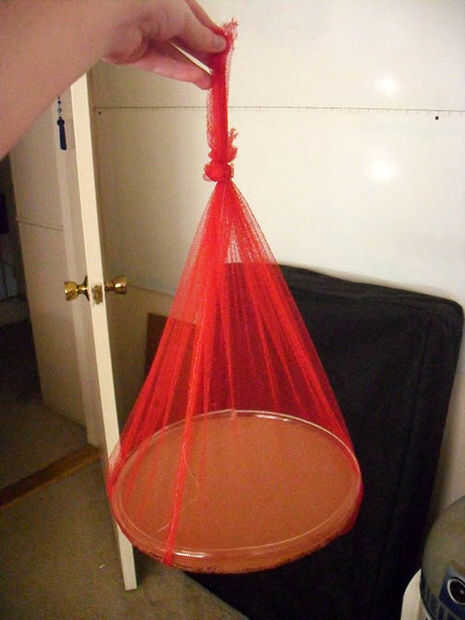 Ahora puede colgar la choza por la borla superior y la estructura permanecerá. Puede colgar de un gancho por la red sí mismo o colocar cordeles. No te preocupes si el piso de la cartulina se inclina un poco. Que realmente puede ser bueno--permitiendo que residuos de caterpillar rodar lejos y quedar atrapados por la red sobrante por debajo, donde no interferir con su salud antes de que usted puede volcar hacia fuera.