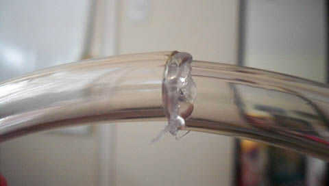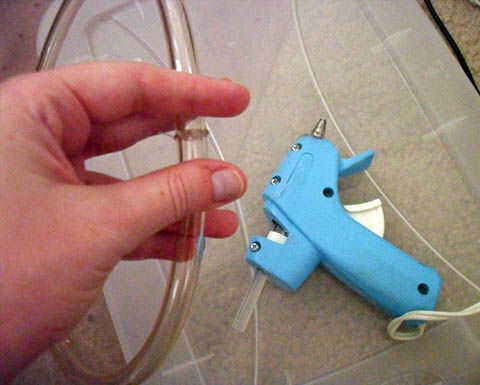 Pegamento caliente los extremos de los tubos juntos. Mantenga presionado hasta que el tío es firme.