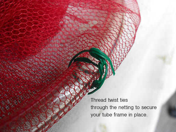 Establece la choza sobre una superficie, colapsando la red y asegure el tubo en su lugar con lazos de torcedura. Cuatro lazos equi-distantes trabajaron bien para apoyar mi.